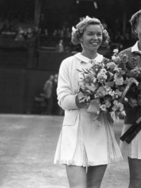 | Bio | Ambidextrous, she hit with tremendous pace off both wings-hitting nothing but forehands. Best on hard courts-blitzing Maureen Connolly more than once. Considered by many to be on the short list of best players never to win a slam in singles, she was unique not only due to her style of play, but for being a mother who played the tour. Fleitz began playing tennis at age 11 and played mostly on public courts in Lincoln Park in Santa Monica, California. Her father Frank Baker was her only coach and was the assistant director of recreation for the city of Santa Monica. During 11 of the 12 weeks following June 19, 1950, Fleitz competed in tournaments across the U.S. In singles, she won three titles, was the runner-up three times, and was a semifinalist at both the U.S. National Championships and the U.S. Women's Clay Court Championships. Her six losses during this period were to Doris Hart (twice), Margaret Osborne duPont (twice), Maureen Connolly, and Magda Berescu Rurac. She recorded wins over Louise Brough, Connolly, Berescu Rurac, Patricia Canning Todd, and Dorothy Bundy Cheney. In women's doubles, she was a quarterfinalist at the U.S. National Doubles Championships. 1955 Wimbledon finalist, she also made 4 semis and 6 QF in slams. Discovering she was pregnant at Wimbledon in 1956, she pulled out of the Championships despite being favoured to win. In 1958 she was already the mother of 3 children. ( John, Julie Ann and Kim) She retired permanently from singles tennis in 1959 and was inducted into the Southern California Tennis Association Hall of Fame in 2005. |