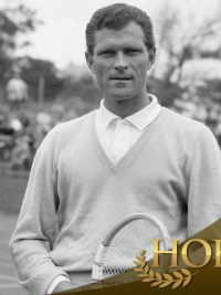 | Bio | He was born in Arkansas, J. Edward “Budge” Patty received his tennis tutelage in California, and then moved to Paris when he was in his twenties. No matter where he played, Patty was a spectator’s delight. A remarkable all-court player with an exceptional forehand volley, he won the French Championships and few weeks later as well Wimbledon in 1950. He stopped Jaroslav Drobny in a five-set final at Paris and overcame Frank Sedgman in the Wimbledon title match. Patty’s grace and regal demeanor made one think he belonged on a court of royalty rather than a tennis court. Patty was ranked World No. 1 in 1950 by John Olliff of The Daily Telegraph. Budge was inducted in the International Tennis Hall of Fame in 1977. |