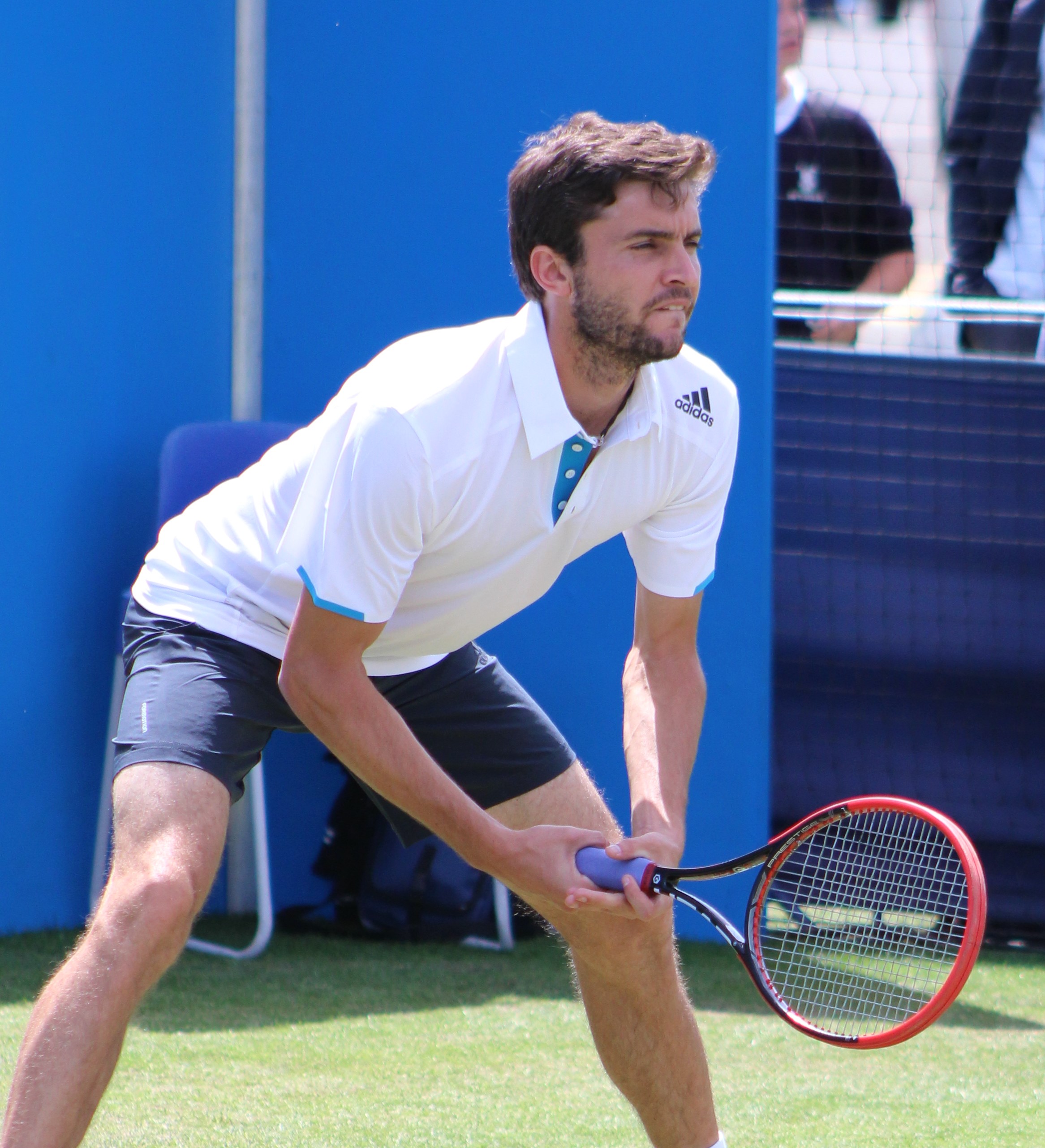 | Bio | Gilles Simon was born in Nice but grew up in Fontenay-sous-Bois, outside Paris. Supported by his parents, he started playing tennis at the age of six. Owing to a growth delay that runs in the family, he was shorter than most children of his age during his early teenage years. This is the reason he cites Michael Chang as a major influence, as his comparatively small frame proved that size was not the only factor in playing tennis. Simon began his professional tennis career in the summer of 2002, competing at multiple Futures tournaments in France before playing in tournaments outside the country of his birth. His first Futures title came in Lisbon, Portugal, in June 2003, and he reached the quarterfinals of three other tournaments. He then captured his second title in Jamaica in September. During 2004, he saw three wins in France and another in Algeria. In January 2005, he won his first ATP Challenger hard court tournament in Nouméa, New Caledonia, and defended it the following year. Ranked as world no. 113, Simon made his Grand Slam debut at the 2005 French Open, losing in the first round to Olivier Patience in four sets. In 2006, Simon competed at the first grand slam of the year, the Australian Open, where he beat Nicolás Massú and Tomáš Berdych before being defeated by No. 13 Thomas Johansson in the third round. After his result in the tournament, he broke into the top 100 for the first time, climbing to no. 89. The Frenchman reached his first ATP Tour final in Valencia with wins over Andreas Seppi in the quarterfinal and Fernando Verdasco in the semifinal, but lost to Nicolás Almagro. He also made it to the semifinals in Casablanca, as well as the round of 16 in both the ATP Masters Series tournaments in Monte Carlo and Hamburg. At the end of the year Simon was ranked 45th in the world. At the beginning of 2007, Simon won his first ATP title at the Open 13 in, Marseille, France. En route to the final, Simon beat Lleyton Hewitt, Jonas Björkman, and Robin Söderling. In the final, Simon defeated Marcus Baghdatis. In September, he won his second title of the year and of his career at the BCR Open Romania in Bucharest, Romania. He defeated Victor Hănescu in the final He broke into the top 30 for the first time on November 5 and finished the year as no. 29 in the world. By the end of the year, his career record against top-10 players was 4–5. In 2008, Simon reached the quarterfinals in Marseille, defeating world no. 3 Novak Djokovic, in the second round. He reached the semifinals in Rotterdam the next week. In May, he entered Casablanca as a qualifier due to his late entry to the tournament, even though his ranking was high enough to be seeded. Simon went on to win the tournament by defeating Julien Benneteau in the final. After his third-round loss to countryman Richard Gasquet at Wimbledon, Simon left Europe for the United States to familiarize himself with the hard courts before the U.S. Open Series. He competed in the Indianapolis Tennis Championships and hit a career-best no. 25. He beat Tommy Haas and Sam Querrey before reaching the final. He won the tournament by beating the defending champion Dmitry Tursunov in straight sets. The following week, he competed at the Rogers Cup in Toronto, including a win over world no. 1 Roger Federer in the second round, before losing in the semifinals to German veteran Nicolas Kiefer. This resulted in an entry into the top 15, three ranks behind the French no. 1, Richard Gasquet. Simon participated in the 2008 Summer Olympics in Beijing, playing in the singles for France alongside Paul-Henri Mathieu, Michaël Llodra, and Gaël Monfils. He played doubles with Monfils, but lost in the first round to the Indian team of Bhupathi and Paes. In singles the Frenchman reached the third round, with victories over the Swede Robin Söderling and the Argentine Guillermo Cañas before falling to James Blake. At the US Open, Simon was seeded number 16. On day 6, he lost in the third round to the 17th seed Juan Martín del Potro, in a five-set match that lasted 3 hours and 47 minutes. On September 14, Simon won his third title of the year and fifth ATP title, defeating Carlos Moyà at the 2008 BCR Open Romania. Simon entered the 2008 Madrid Masters the following month, defeating no. 11 James Blake and no. 14 Ivo Karlović to reach the semifinals. In the semifinals, he defeated world no. 1 Rafael Nadal in three sets, in a match that lasted 3 hours and 23 minutes. Simon lost the final to world no.4 Andy Murray in straight sets. The tournament boosted Simon to a career-high world no. 10, displacing Richard Gasquet as French no. 1. By the end of 2008, France had four players in the top 20 (Simon, Tsonga, Gasquet, and Monfils), for the first time since computer rankings were established in 1973. The French paper L'Equipe grouped the four player as néo-Mousquetaires. French TV Canal+ went on to produce a documentary series that followed the four French players and their touring around the world. The series "Les 4 Mousquetaires" went on the air for two seasons during 2009 and 2010. On November 3, he qualified for the Tennis Masters Cup, a tournament usually reserved for the world's top eight players in Shanghai, after Rafael Nadal withdrew due to knee complications and fatigue. He was drawn in the red group with Roger Federer, Andy Murray, and Andy Roddick. In his first round-robin match, he beat defending champion Federer. Simon lost to Murray in his next match, but followed it with a victory over Radek Štěpánek, who replaced the injured Roddick. After Murray defeated Federer in the final round-robin match, Simon qualified for the semifinals, where he lost to world no. 3 Novak Djokovic in three sets. After this, he achieved a career high of world no. 7. In December, he played in the newly formed Masters France exhibition tournament for the eight French players who had performed best at the four French tournaments. He qualified from the round-robin