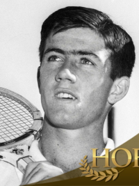 | Bio | As the Doomsday Stroking Machine, the remarkable Kenneth Robert "Muscles" Rosewall was a factor in three decades of tennis, winning his first major titles, the Australian and French singles in 1953 as a teenager, and continuing as a tournament winner past his 43rd birthday. Probably nobody played better longer. He was yet a tough foe into 1978. At the close of the 1977 season, he was still ranked as one of the top players in the game, No. 12, on the ATP computer, having won two of 24 tournaments with a 44-23 match record. "It's something I enjoy and find I still do well," was his simple explanation of his prowess in 1977, "but I never imagined myself playing so long when I turned pro in 1957." The son of a Sydney, Australia, grocer, Rosewall was born in that city Nov. 2, 1934, and grew up there. A natural left-hander, he was taught to play right-handed by his father, Robert Rosewall, and developed a peerless backhand. Some felt his size (5-foot-7, 135 pounds) would impede him, but it was never a problem. He moved quickly, with magnificent anticipation and perfect balance, and never suffered a serious injury. Though his serve wasn't formidable, he placed it well, and backed it up with superb volleying. Rosewall was at home on any surface, and at the baseline or the net. He had an even temperament, was shy and reticent, but good-natured. Although Rosewall, the little guy, always seemed overshadowed by a rival, first Lew Hoad, then Pancho Gonzalez and Rod Laver, he outlasted them all, and had the last competitive word. Even when Laver was acknowledged as the best in the world, Rosewall could bother him, and twice shocked Rod in the rich World Championship Tennis finals in Dallas (1971 and 1972), snatching the $50,000 first prize from the favorite's grasp. The latter match, thought by many to be the greatest ever played - a 3-1/2 hour struggle watched by millions on TV went to Rosewall, 4-6, 6-0, 6-3, 6-7(3-7), 7-6, (7-5), when he stroked two magnificent backhand returns to escape a seemingly untenable position in the decisive tie-breaker (down 5-points-to-4) and win by two points. It was the closest finish of an important championship until Boris Becker beat Ivan Lendl, also 7-5, in a fifth-set tie-breaker, for the 1988 Masters title. Rosewall and Hoad, born only 21 days apart, Ken the elder, were linked as teammates and adversaries almost from their first days on court. In 1952 as 17-year-olds they made an immediate impact on their first overseas tour, both reaching the quarter-finals of the U.S. Championships at Forest Hills, Ken beating the No. 1 American, Vic Seixas, 3-6, 6-2, 7-5, 5-7, 6-3. Later the following year (having won the Wimbledon doubles together), shortly after their 19th birthdays, they became the youngest Davis Cup defenders, collaborating for Australia to repel the U.S. challenge in the finale. Rosewall beat Seixas in the decisive last match to ensure a 3-2 victory. Though Hoad was considerably stronger physically than Rosewall, who had been given the sardonic nick-name "Muscles" by his mates, Ken always managed to keep up with (and often surpass) him in the early days. Hoad beat Rosewall in the 1956 Wimbledon final, but his bid for a Grand Slam was spoiled when Rosewall knocked him off in the U.S. final at Forest Hills. Linked in doubles as well as the public mind, Ken and Lew might well have made a Grand Slam together in 1953, but came up three wins short. After taking the Australian, French and Wimbledon, they had a bad day in Boston, dropping a close U.S. quarter-final decision to unseeded Americans Hal Burrows and Straight Clark, 5-7, 14-12, 18-16, 9-7. But they (Kenny unerring of return from the right court) grabbed that title in 1956. After helping Australia win the Davis Cup twice more, both 5-0 over the U.S. in 1955 and 1956, winning all four singles and a doubles seemingly effortlessly, Rosewall turned pro to take on the professional king, Pancho Gonzalez. Gonzalez stayed on top, winning their head-to-head tour, 50-26, but it was apparent that Rosewall belonged at the uppermost level. Thus began one of the longest professional careers, certainly the most distinguished in regard to significant victories over so lengthy a span. Rosewall won the first of his three U.S. Pro singles titles over Laver in 1963, the second by beating in succession, Gonzalez, then and Laver in 1965, and the third over Cliff Drysdale in 1971. That was one of the three championships that the pros held dearest during their days as outcasts prior to opens. The others were the French Pro, won by Rosewall eight times, including seven in a row (1960-66), and Wembley in London, won five times by Rosewall between 1957 and 1968. Memorable battles were the five-set, 1963 French Pro final over Laver and the 1962 Wembley final over Hoad. Ken's sparkling rivalry with Laver stretched over 111 encounters, Rod ahead, 62-49 (6-4 in the open era). He was 59-101 against Gonzalez and 45-25 over Hoad. Rosewall holds several longevity records. Fourteen years after his 1956 Forest Hills triumph over Hoad, he beat the favored Tony Roche, 10 years his junior, to win the U.S. Championship again. Eighteen years after that final - having beaten favored John Newcombe, 6-7 (3-5), 7-6 (5-1), 6-3 - he was crushed in the 1974 windup by Jimmy Connors. Twenty years after appearing in the first of four Wimbledon finals, he lost the 1974 final to Connors. The only big one Rosewall missed out on was Wimbledon singles, but he won the doubles twice. Nineteen years after his first major title, the Australian, over Mervyn Rose, he won it again, in 1972, over Mal Anderson. He also made it to the semis in 1976 and 1977 - 24 years after the first time! Twenty years after his first Davis Cup appearance, he returned to help Australia win once again in 1973, and played his last cup match in 1975, having been in on four Australian Davis Cups and three World Cups in the since-disbanded team match against the U.S. Altogether, Ros