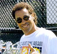 | Bio | Steve Krulevitz is a retired American-Israeli right-handed tennis player. His highest singles ranking was # 42. He competed on the Professional Grand Prix Tennis Circuit for over ten years. Krulevitz won the MSA Singles four times and was named to the United States Junior Davis Cup Team. He earned Bachelor of Science degree in Kinesiology from UCLA and was named All American in 1973. Krulevitz was among the top 100 players in the world for nine consecutive years. He has participated in 9 Wimbledons, 13 US Opens, 8 Roland Garros and 2 Australian Opens. He was also an Israeli Davis Cup player from 1978-1980. His career singles titles include Sarasota (1979) and Chichester (1981). His career Doubles titles include Stowe (w/Cahill) in 1979 and Brussels (w/Stevaux) in 1980. He made it to the 3rd round of Wimbledon and the French Open in 1976, and to the 3rd round of the Australian Open in 1979. He won the 1977 Gold Medal for the United States at the Maccabbi Olympic Games in Tel Aviv, Israel. In May 1981 Krulevitz won the Chitchester, Great Britain tournament. In May 1982 he lost in the finals of the Tampere, Finland tournament. Krulevitz was inducted into the USTA Mid-Atlantic Tennis Hall of Fame in 1993. Krulevitz's students include Gilad Bloom (Israel), Jaime Yzaga (Peru), and Tom Shimada. Americans he has coached include Reed Cordish, Patrick Osuna, and Vince Spadea. He is varsity tennis head coach at Gilman School, where he led the team to a 12th place finish at the high school national champioships in Kentucky. He holds a weekly tennis camp at the school. Born and raised in Baltimore, with dual citizenship, Krulevitz played # 1 for Israel's Davis Cup Team and coached that Davis Cup team as well. Krulevitz was 4–5 in Davis Cup competition for Israel from 1978-80. |